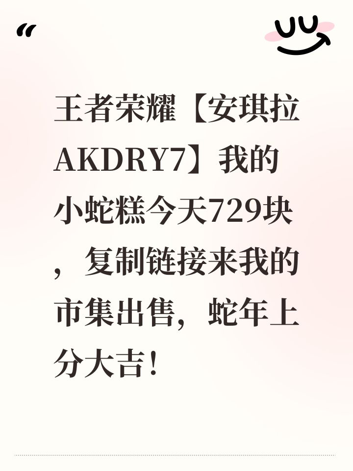 王者荣耀【安琪拉AKDRY7】我的小蛇糕今天729块,复制链接来我的市集出售,蛇年上分大吉!