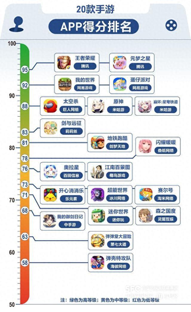 最近,南财合规科技研究院连续第四年发布防沉迷研究报告。今年的测评结果显示,各家平均分为79.1分,其中,《王者荣耀》《元梦之星》以95分并列榜首!具体测评结果见图。#今天游戏圈发生了啥 #吃瓜爆料 #游戏资讯