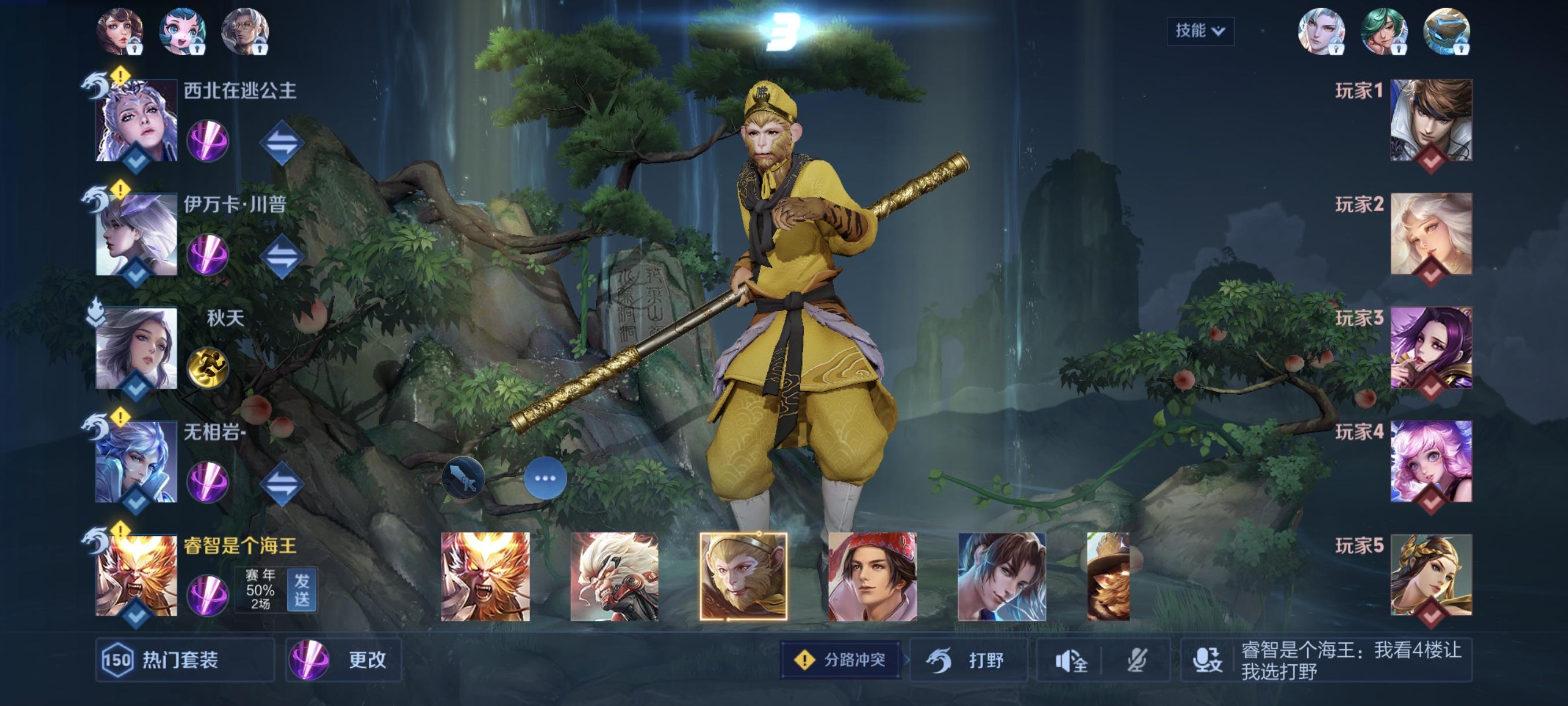 我我方有两个打野位置重复了,我们以为4个打野是可以重开的,于是就诞生了这种奇葩阵容。。。。