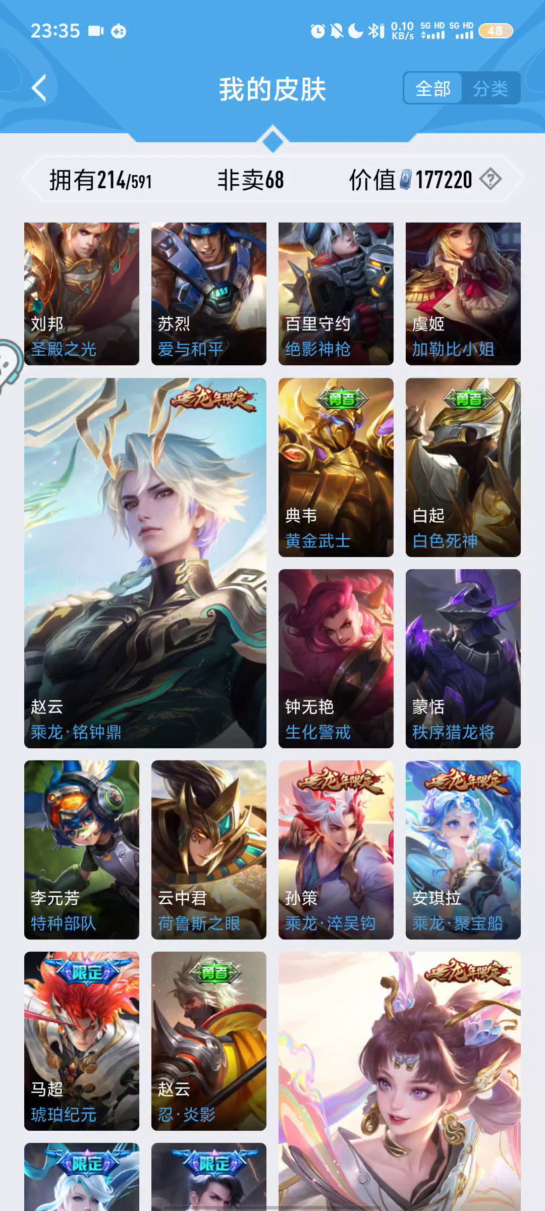 v8差两千五v9(有些皮肤淘宝买的没积分),英雄缺武则天,大司命货币够四号可换,有一个荣耀水晶没换。不看战绩单纯按皮肤号来看值多少元子(单纯好奇,不卖,希望有大佬客观评价一下)