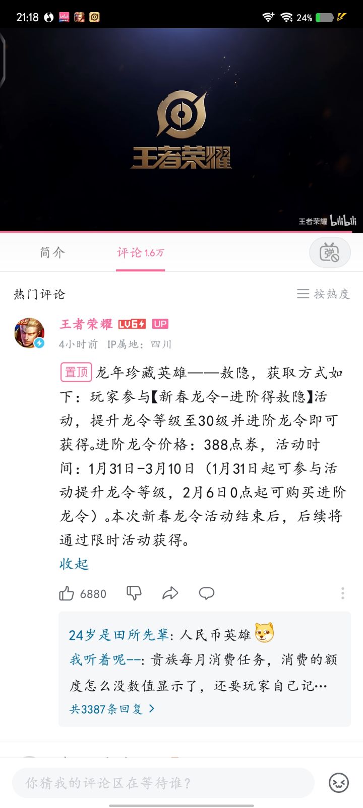 一刻也没有为安琪拉龙年限定感到哀悼,现在立刻赶到战场的是全新付费英雄敖隐!出之前我还跟朋友说不能付费呢,顶天王者水晶,哈哈哈这下成🤡了#王者荣耀#游戏讨论