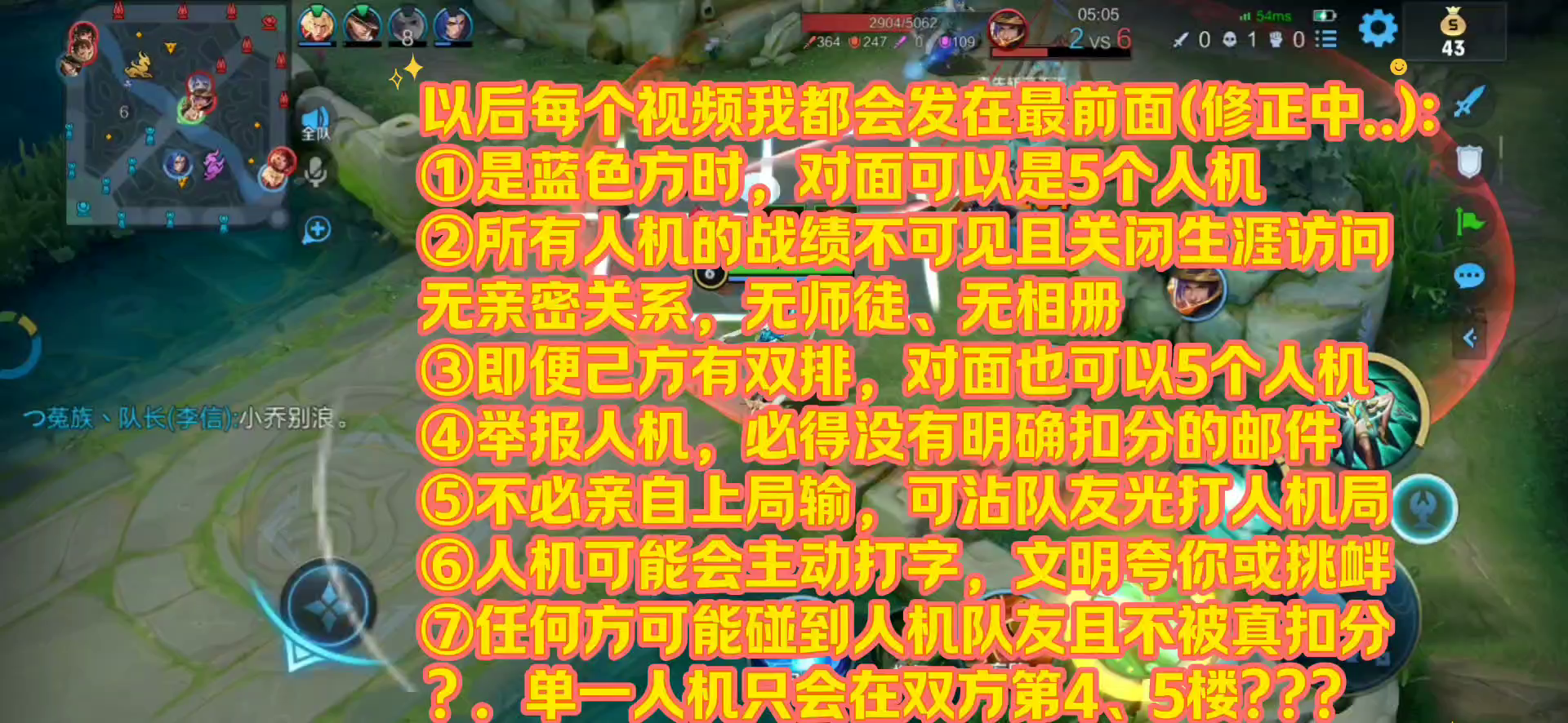 哦哦~ 我视频下的简介里总是充满了欢快的文字! 先说:由于我的智商和情商极其之高 然后是些陈词滥调: 【别人的人生可能是不断获得;而我的人生是不断的失去。“人的一生不需要这么多..”】 所以别人玩王者可能是英雄池越来越深,越来越精进操作技术;而我能玩的英雄越来越少,也越来越从操作转变到意识上。。也许赢下一局游戏不需要那么多.. 不需要这个、不需要那个.. 【如果很复杂,那么它应该就不是真理】【事实和真相,往往都是简单的】 ???什么连招?多少秒进野区?多少分开龙?多少分推塔?什么刷野路线?蹭兵线方法?噼里啪啦一大堆太复杂的,,我通通都不会教你、也不会跟你说 【规则内的东西只会被规则摆布;在规则外的东西才是真正厉害的东西!】 教再多,也只是让你在能赢的局里面可以赢稳一点;而必输的局,你做什么努力也没有用。。如果没有什么确切的能降低隐藏分、局局匹配强队友的方法,那在ELO机制支配下,教再多也是枉然 【你知道吗!你不需要做到多优秀!你仅仅只需要维持基本的'正常',就可以比绝大部分人要好上许多了】 你别掉点,别添乱,别拖后腿,别施压队友。。你只需要简单地做好正常的事情就已经够可以了 【你知道吗?你甚至无法分辨人机队友,人机敌人。无论输赢,你只是被蒙在鼓里的可怜虫】 虽然我知道的也不多,但是比你多;且我见到的越多,知道的越透彻 【S32·超详细!教你正确分辨王者荣耀排位中的人机!-哔哩哔哩】 https://b23.tv/6REmOfM —————— S32,奥米霸的王者荣耀排位举报楼!! - TapTap https://www.taptap.com/topic/24707314