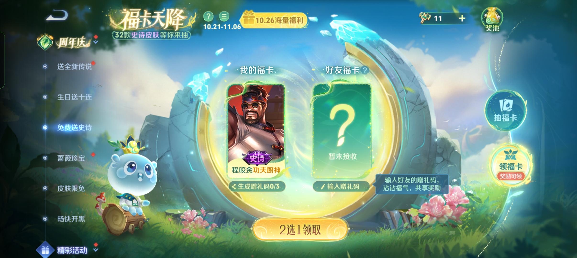 #福卡送史诗#王者荣耀周年庆送皮肤啦!【地