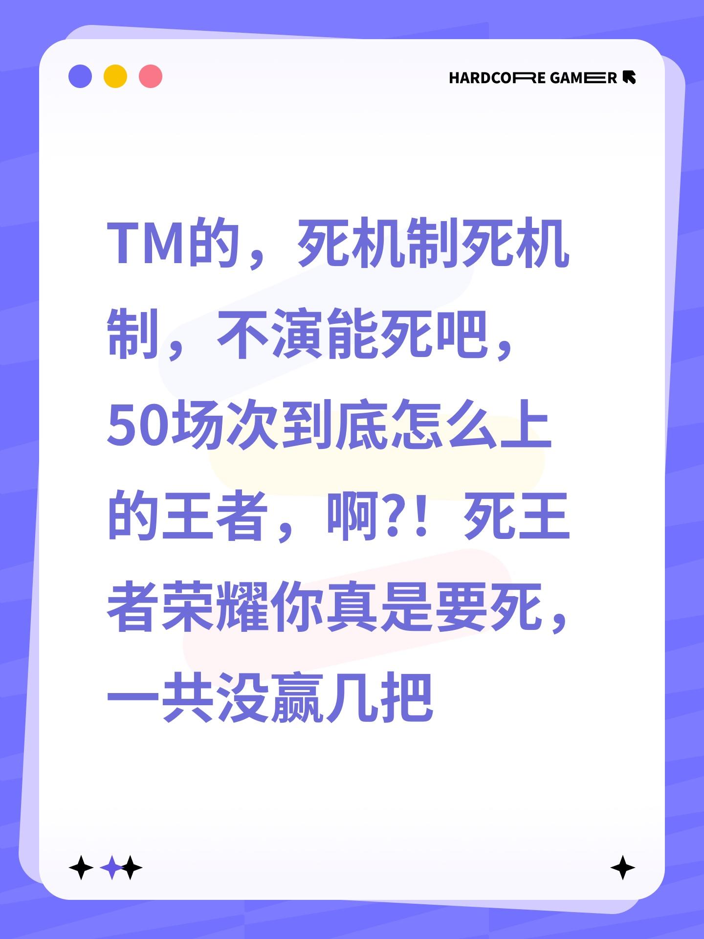 TM的,死机制死机制,不演能死吧,50场次到底怎么上的王者,啊?!死王者荣耀你真是要死,一共没赢几把,赢一把就给我整这没妈的死出,你要死吧#浅评一下 #浅评一下