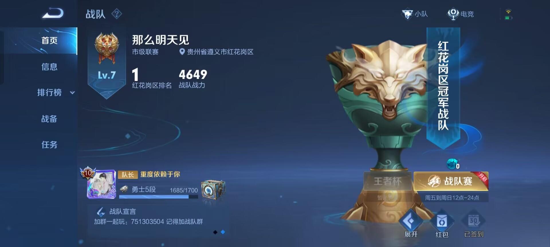 新晋战队:那么明天见 在线招人,要求,要打战队赛,每周打完会发红包,要成年人未成年不要,不能骂人,不能引战,不能双标人,如果你有兴趣就来联系我吧!#游戏讨论