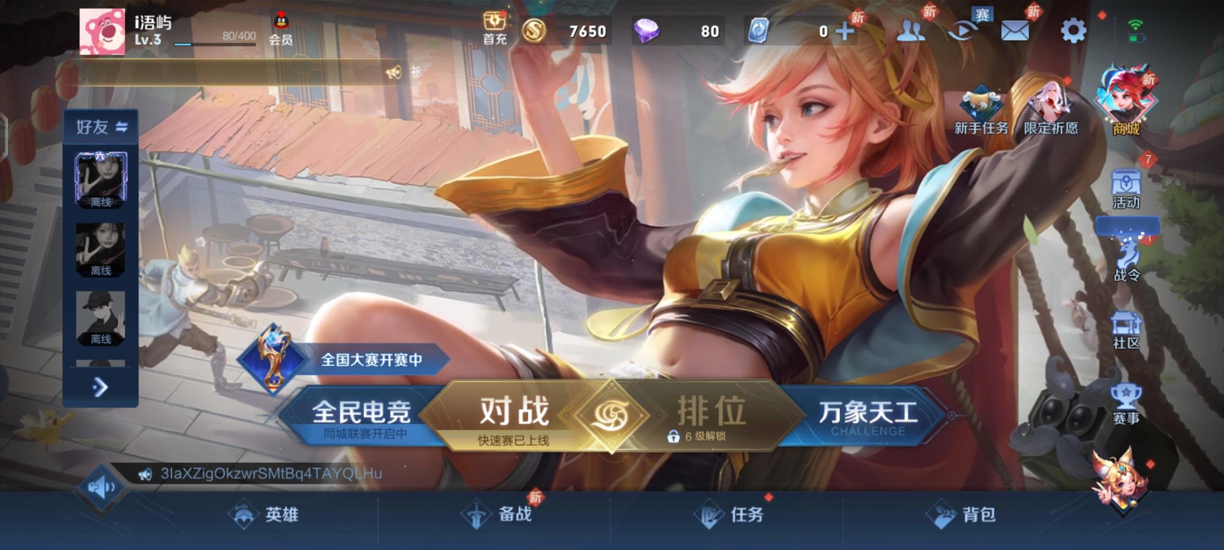 一个人好无聊,v区有没有一起排位的,目前星耀2晚上9点到12点都会玩,出了中单,其他都能玩