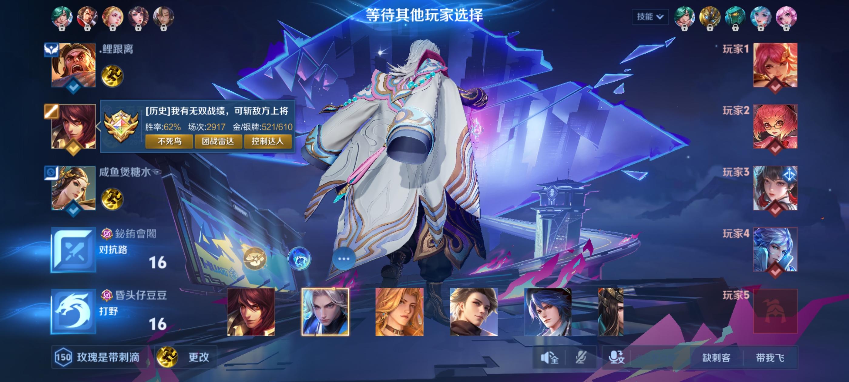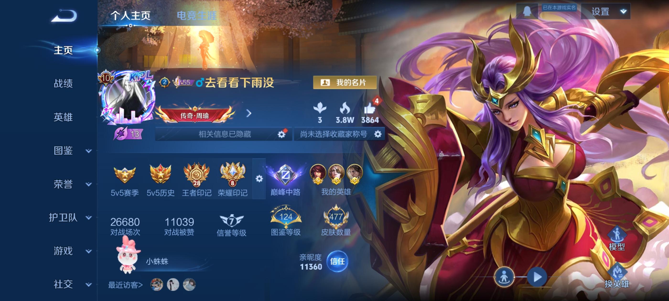 就喜欢在发育路2v5对抗全世界。(bushi)发育路真的很需要配合,不管射辅,所以想找个搭子一起上分。本人目前星耀,最高段位无双,实力应该就是这个段位正常水平。希望搭子水平相近,当然,要是有大佬愿意带我我肯定也不介意(´∀`)射手理论上而言除了阿古朵和蒙犽都会,实际阿离马可黄忠也玩得很一般( )常用射是孙权。游走如图,水平差不多。常用软辅比较多,偶尔会用法师打游走( )不过现在在准备练全辅