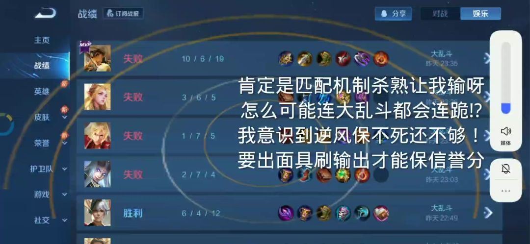 ?嗯,你说前面一片红色的战绩是发生了什么事: 【S34·王者荣耀巅峰赛:机制干预影响远超玩家个人意志【终极举报】-哔哩哔哩】 https://b23.tv/PZT6wKc S34·王者荣耀巅峰赛:机制干预影响远超玩家个人意志【终极举报】 - TapTap https://www.taptap.cn/moment/513639434097262607