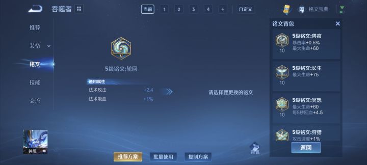 有的英雄铭文缺失 我全铭文 钟馗蓝色没有1.6吸血 墨子就有 这是新改动吗 话说都快S40了 你这破铭文系统什么时候改啊 我黑暗收割李白无敌啊