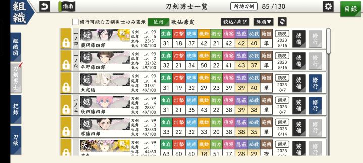 我也没想到我这么快又来求助了同僚们,我找到刀子精们修行的地方了,但是它都是灰色的啊,亮蓝色的是因为我下线又上线后,主动想要修行的刀出现,然后我点了拒绝,这个界面才有可修行刀的出现……其余的无论是等级足够、道具充足、不是一番队队长,也不是近侍,也没有远征手入内翻……都显示灰色,不能修行……介是为嘛啊 求大佬指点噫呜呜噫
