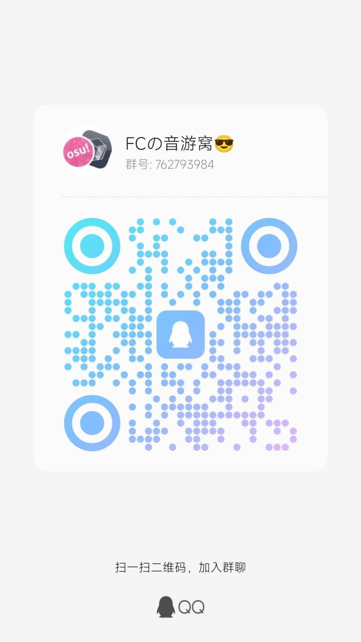 群里人少,说话的也少,招人,不限水平,本人乐意帮忙解决问题。群里主要讨论osu/malody,如果你有其他想聊的音游也可以,不限制,音游之外也行,不要太多(也不指望群里能活跃起来)本人主玩4k,ma8dan,osu5600pp,其他音游也接触不少,偶尔会在群里发点资讯。欢迎加群