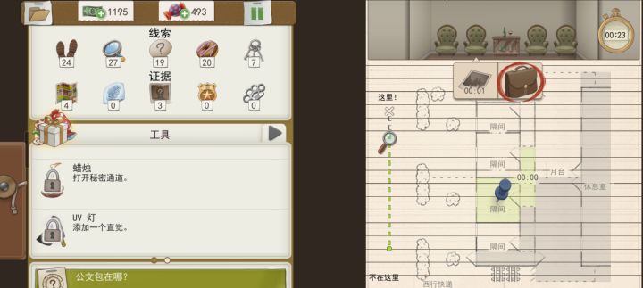 真给我气笑了,这是为啥啊!!!我真服了连续两把,图一二是一把,图三四是一把,从糖果的数量能看出来能明显看到左边那个椅子里的公文包直觉更高,但就是不对,就是错的,凭什么啊我都用一个uv灯了还是我选的车厢不对啊???昨天也是这样,忘了截图了