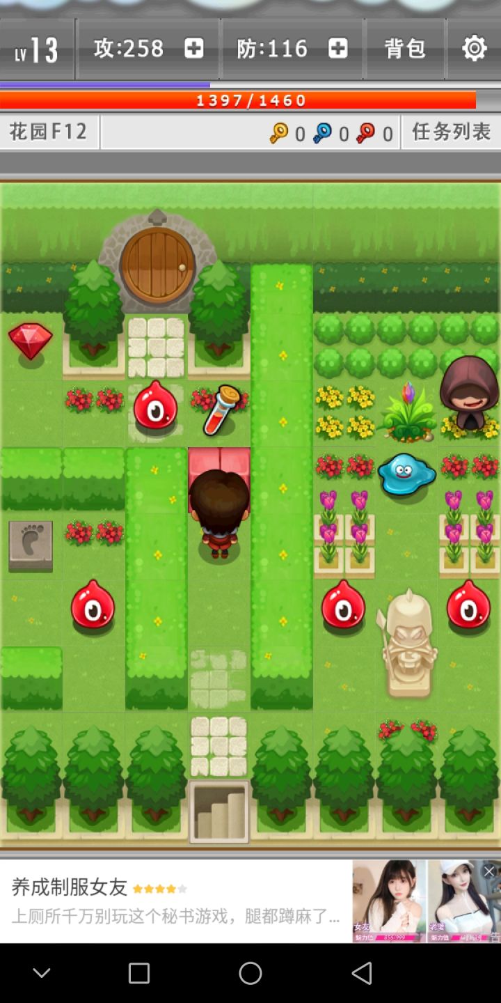 今天给大家带来的是魔塔第二十八层过关攻略。首先玩家们在魔塔这个楼层并不能得到一些实质性的好处,当然,要是玩家们觉得自己的属性够厉害,对于这个楼层的恶魔玩偶不担心的话可以直接打败这个怪物,然后得到这个怪物身后的红宝石以及血瓶,其余的玩家们就只有眼睁睁地看着,并不能做什么。这个时候玩家们就要直接去到下一个楼层拿到一把红颜色的钥匙,然后跑到第二十八层里面的第六号位置前面,用红颜色的钥匙打开这个红颜色的