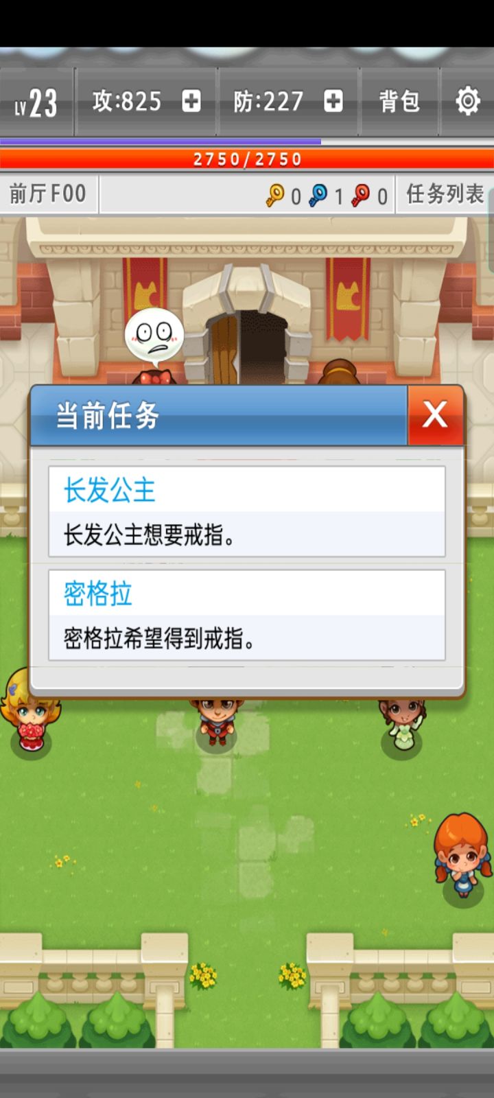 接着上第一章击杀卫士队长来到第二章:花园的神灵.(花园里有一株生长了很久的神秘植物,他有着七色的花蕾,这个花蕾形成已久了,但是一直没有开花的迹象。传说这朵神奇的花朵将会在王子结婚的哪天开放,也许王后的魔法可以让她盛开吧。来到花园F11拿到黄色钥匙,前往花园F12层使用黄色钥匙踩上机关发现“七色花“接受任务(七色花已经生长了很久,不知道什么时候开放。据说花神仙露可以让七色花瞬间开放《任务》)。勇者