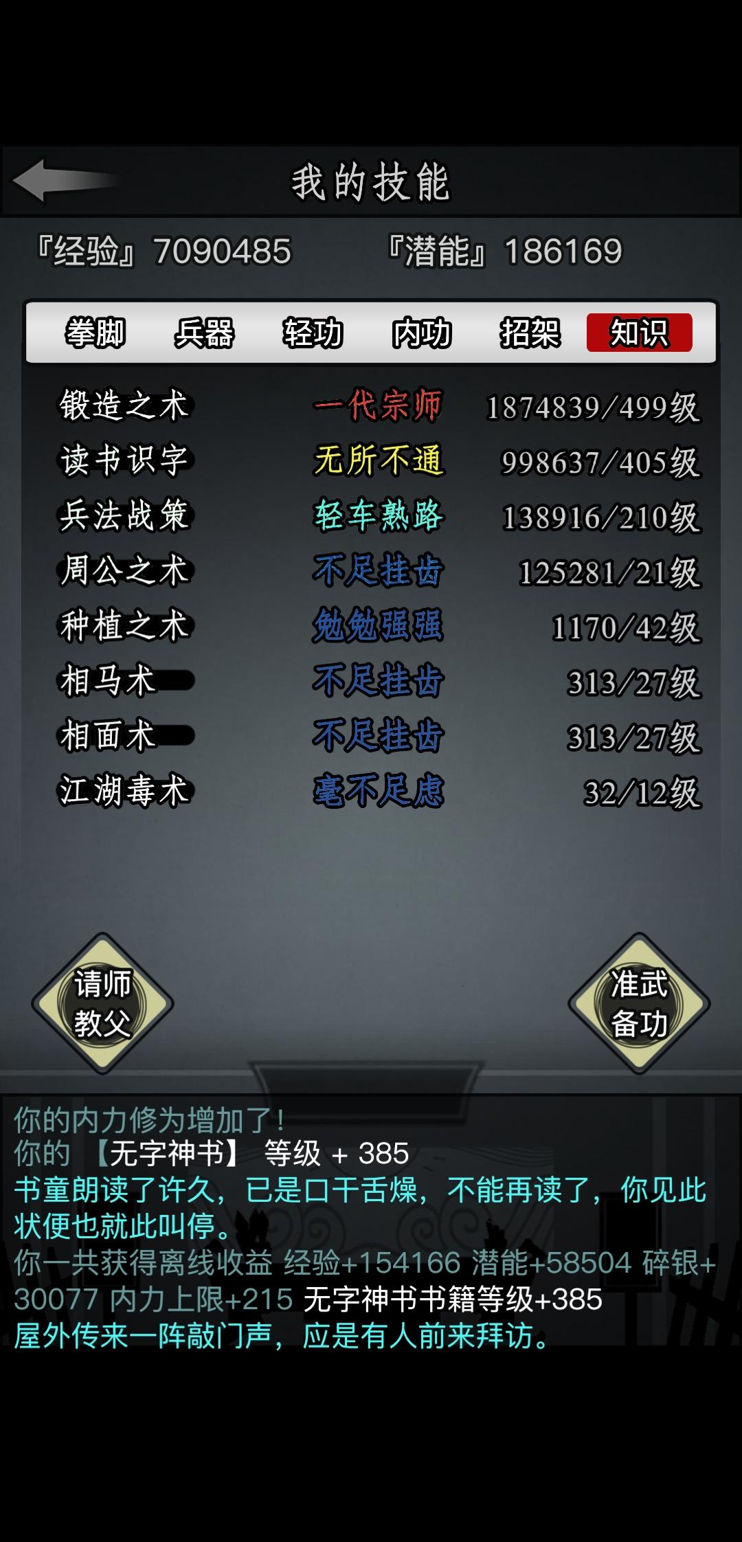 门派师傅技能等级BUG如图,进入游戏后发现技能等级变为一级(不影响请教)出现原因:不明复现方法:不明恢复方法:切换存档/重启游戏后恢复