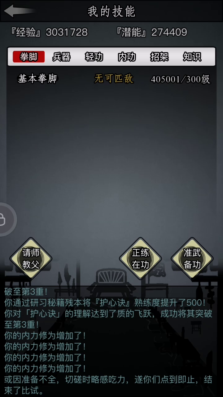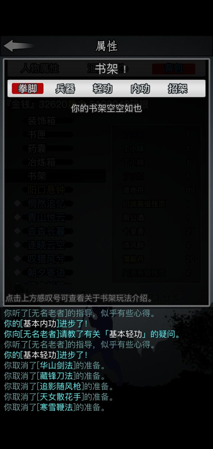 跪求新玩法:某种基本武学等级达到五百开启武学创制系统,可选择此种武学最基本动画(如武学图鉴上的)每升一百级便可自定义一种特效(同种类型特效不可叠加),且可以提升武学系数,武学文本在限制字数内自定义,每升一百级可多写10个字,原装支持50字描述。 武学创造可选择武学基本属性(如剑法:轻灵,沉稳等 内功:混元,紫霞等),基本属性数量则依照角色本身拥有属性武学数量,武学属性影响初始系数和各系数数值上限,