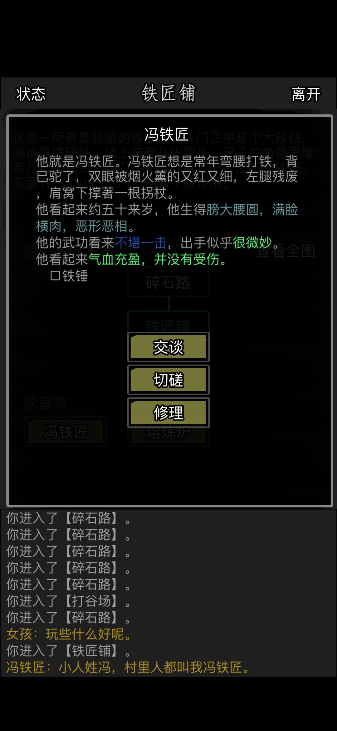 房屋拜访任务,李xx要我修理冯铁匠,但是点了修理什么都没发生,去左边可以决斗赤脚庸医说明网没问题,重新进入副本也还是不能修理。。。这拜访任务就这完了???感觉亏了一个亿