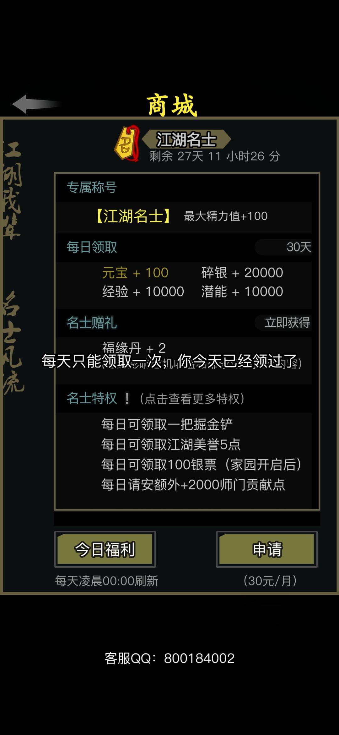 刚入坑5天的玩家…碰到个bug,客服qq没人回。每天登录都提示领取过了,而且请教也是这样。