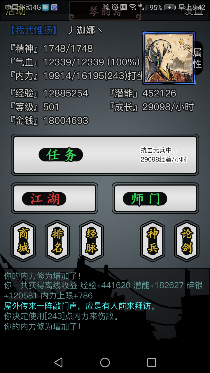刚玩三四个小时在第一章扎几次水念几首诗,回到主界面点师门就叫我公平游戏。然后号没了??