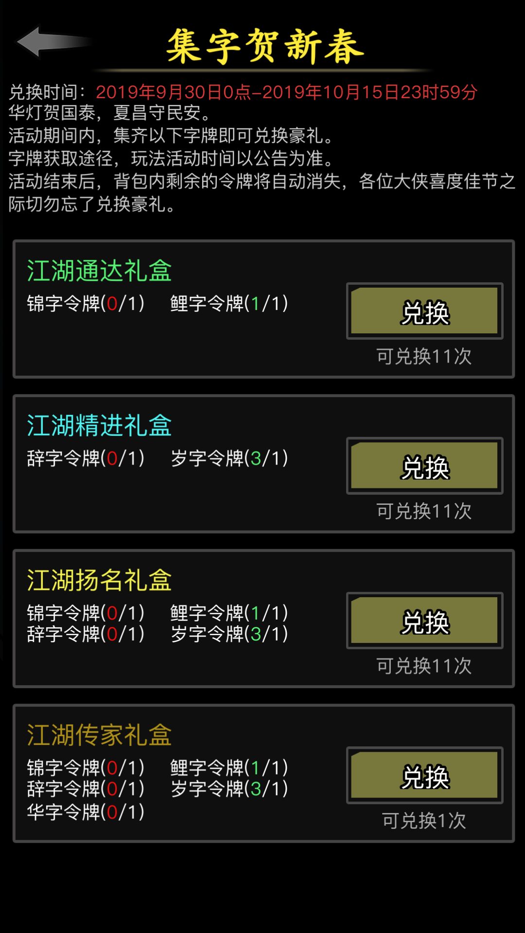 好一个贺新春活动,兑换时间9月30日开始