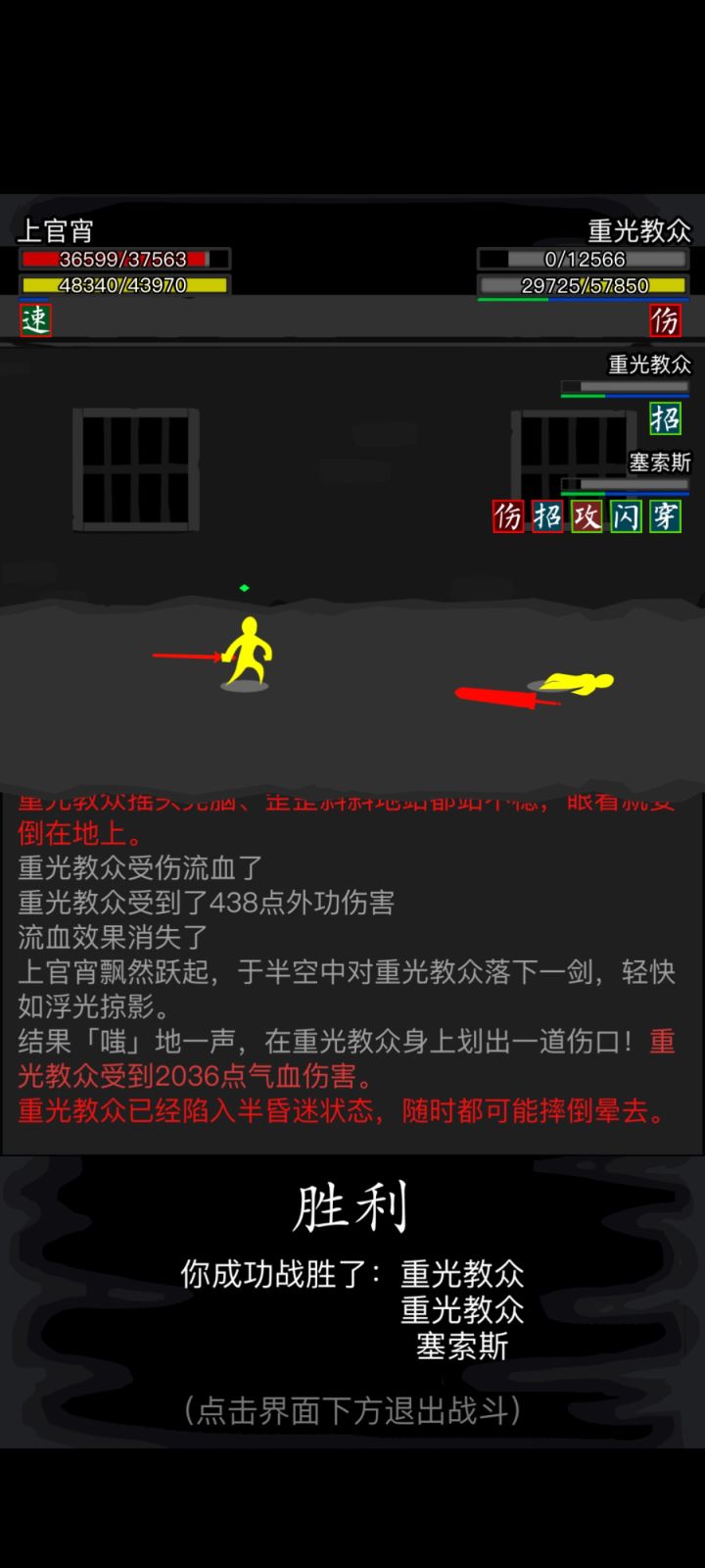 #放置江湖破妄前行 重光六比我想象中简单,开局解个毒就能打了。顺带一提,李胜贤这偏转有点阴,不过内力不多,打一会他就空了,至于塞索斯那就纯弱了对了,逸闻鹤剑特效是紫色剑气,有少侠感兴趣可以去试试,特效还可以,缺点就是只有平A……