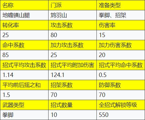 放置江湖官方攻略组:作者:西柚丶编辑:雪雨秋BWIKI攻略地址将于稍后更新武学详情地蟾镇山腿武学数据:主动技能数据:简评:主动技能:威震八荒解锁条件:【臂力】不低于85,【地蟾镇山腿】等级不小于300级。使用条件:【臂力】不低于85、准备【寒蟾三劲功】为内功、准备【地蟾镇山腿】为拳脚、准备【玉蟾攀云】为轻功、战斗中使用【拳脚】或【兵器】为【蟾影捕风手】。鸩羽绝学套拳脚,需要