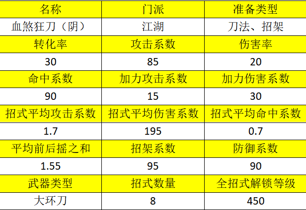 作者:李铁柱编辑:李铁柱此次更新,新增一个江湖刀法“血煞狂刀”和一个江湖内功“玄冥归藏决”,品阶都是顶级武学。一、新增刀法主动技能:使用条件:【根骨】不低于80、准备【血煞狂刀】为兵器。技能简评: 不错的护盾技能,附带抗截脉效果,可以与输出技能“横刀砺血”联动。十重技能护盾系数为0.35,较为优秀。(同类技能华山“紫气护体”护盾系数为0.337,问情绝学“安如磐石”系数为0.2。)
