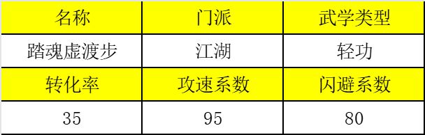 作者:微生梦 ID 4047491326编辑者:浅笑 ID 8047181080前言:在本期攻略中武学等级全为1100所有技能全为10重,个人理解有限本篇攻略仅供参考。武学详情踏魂渡虚步新增武学:新增主动技能:简评江湖轻功,攻速系数非常优秀,是目前轻功比较不错的档次,在平砍上并不会陷入劣势,闪避系数保守,虽然是轻功位但是技能却是可以和拥有招架恢复或招架反震类技能的武学进行联动,契合
