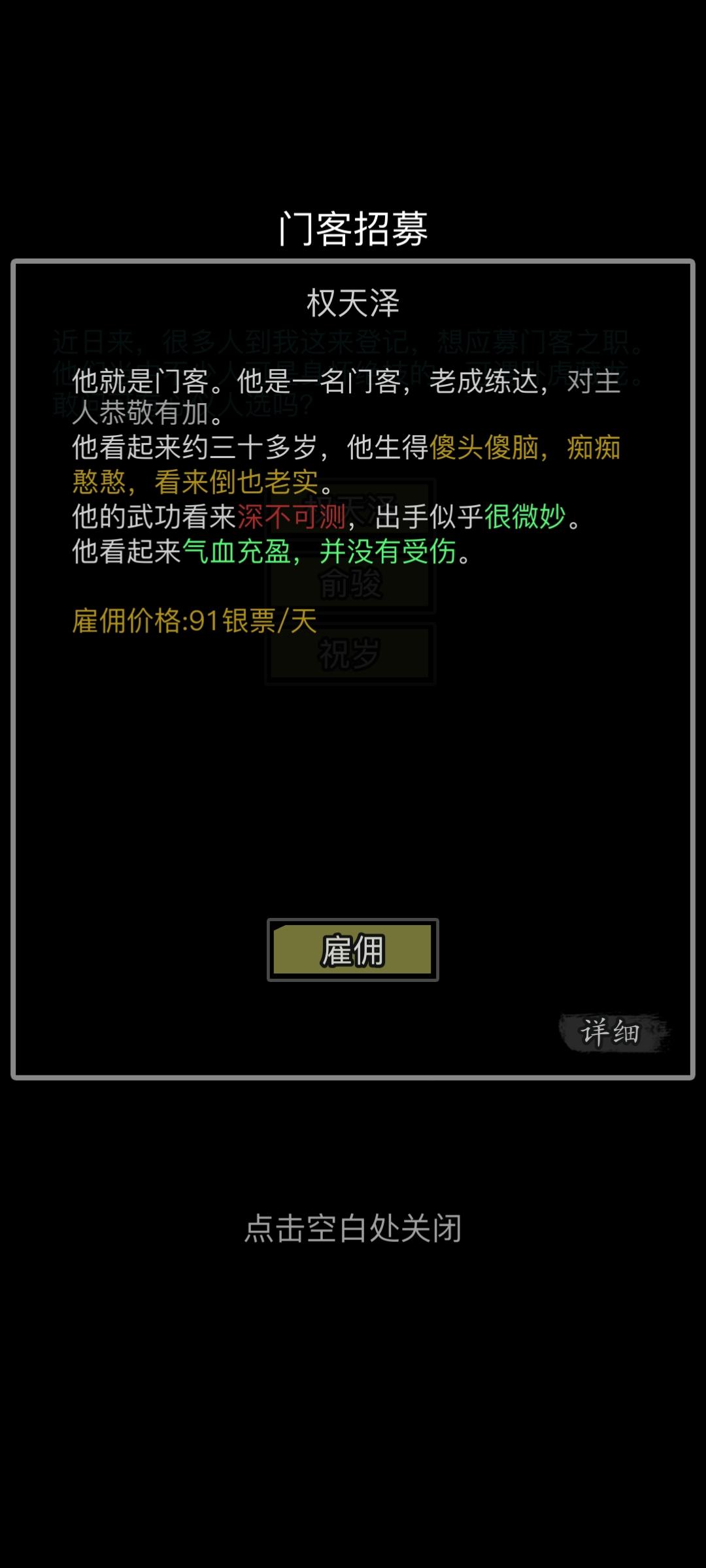 我在想,这两个门客要不要都招募,上面的是半价,下面的是普通门客,但是便宜