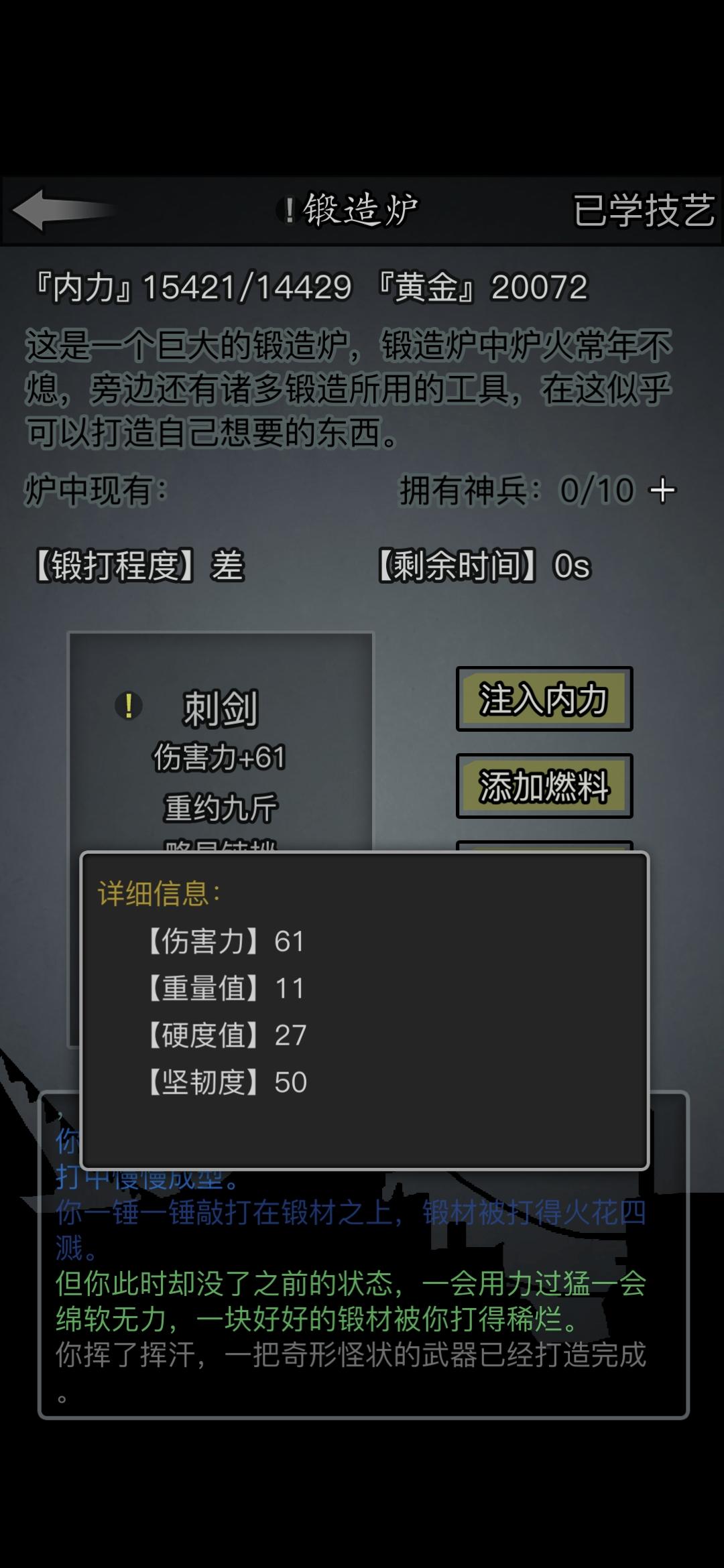 我按攻略上打的刀,为什么打出来只有123,淬了3次才125,有必要继续淬下去吗?还是说重新打