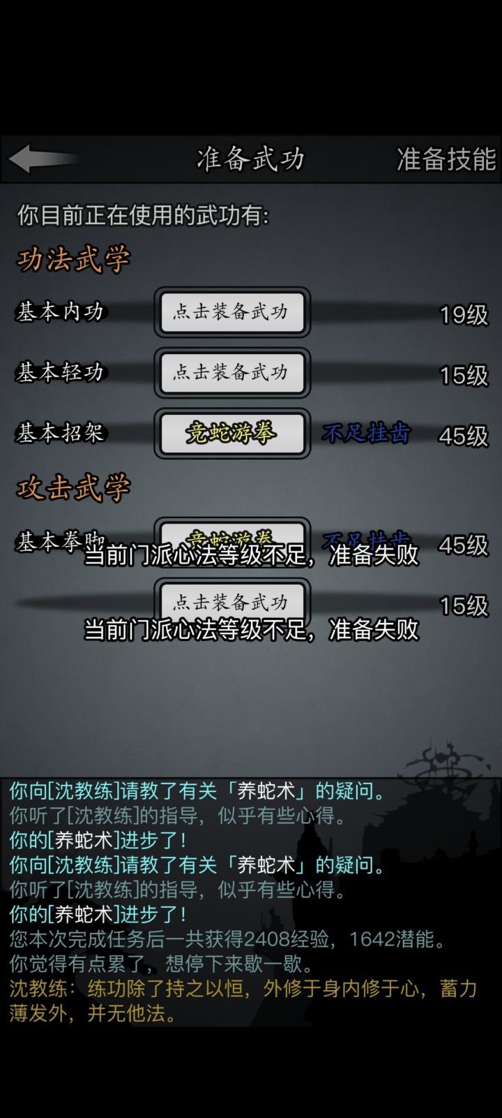大佬问下门派心法低不让装备内功啥原因啊?
