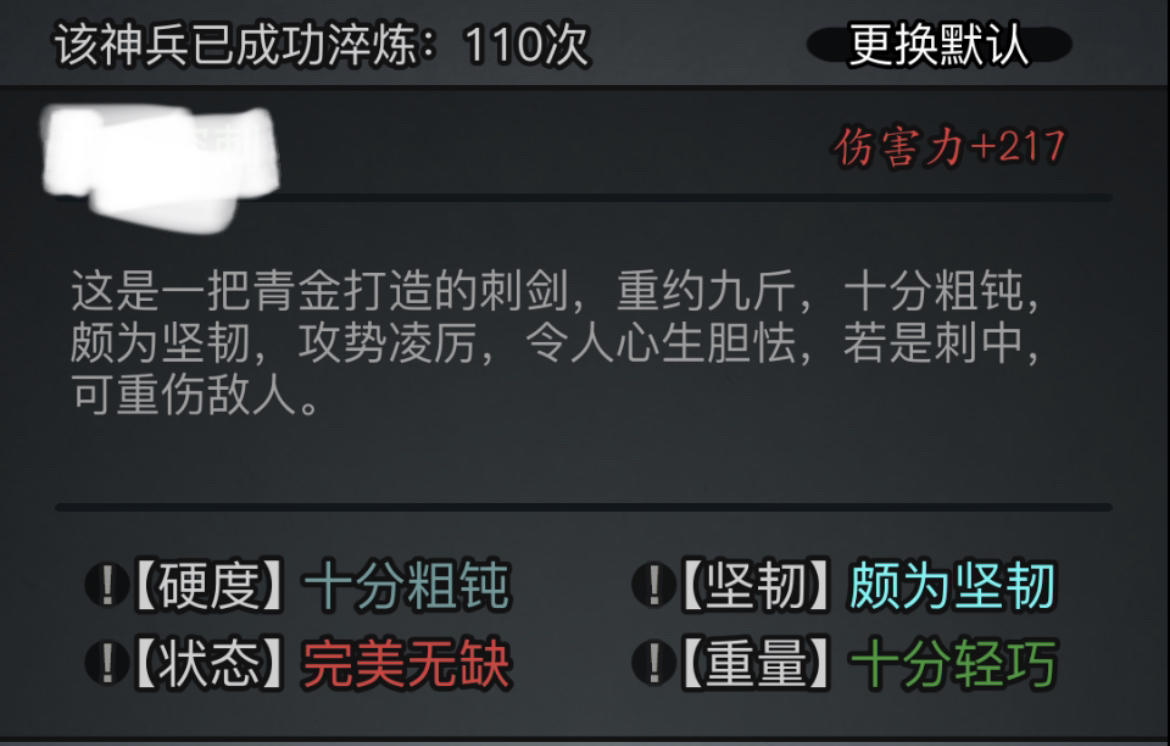 想问下刺剑淬炼一百玄铁两百晶竹会得到怎么样的刺剑呀目前19硬,73韧,12重,还有必要继续淬下去么
