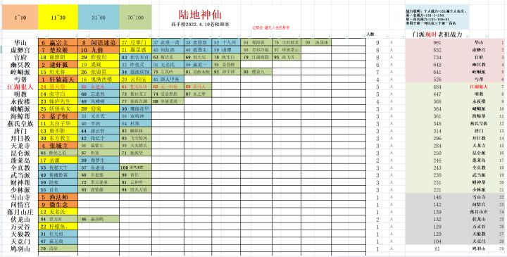 各派天花板战力不完全统计出炉:人聚人散,花落花开多少人来过这江湖。各位加油,争取早日:请,老祖升天!