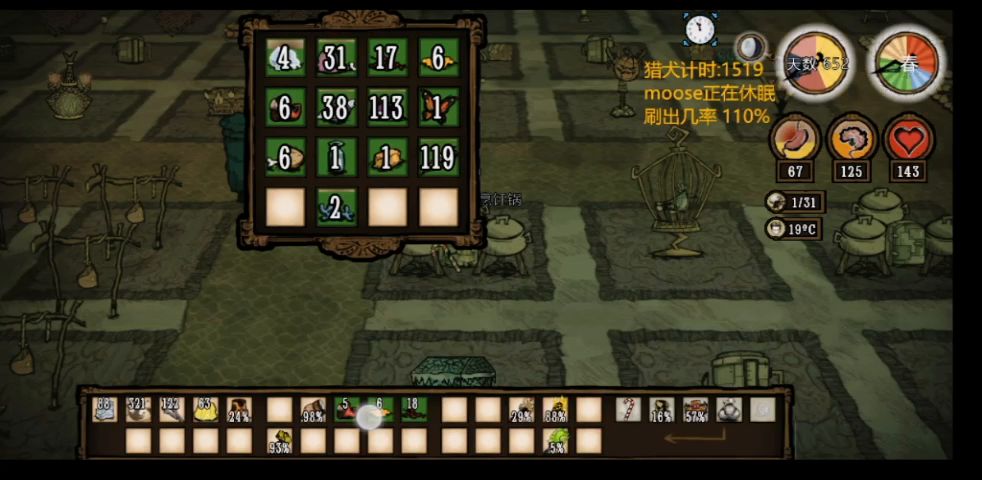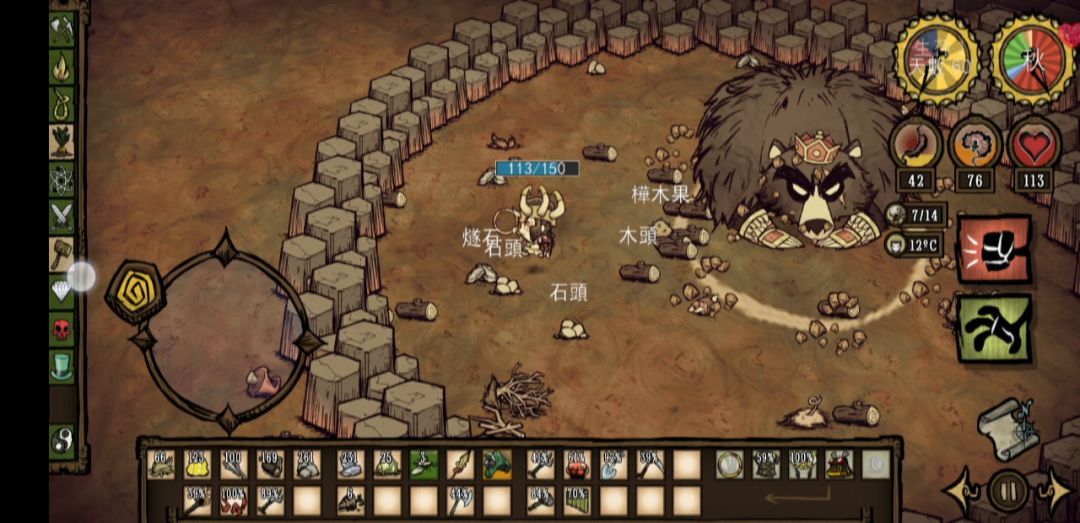 玩饥荒也有三年多了,虽说不算什么大佬,但是好歹有个700天的记录(●—●)这边写点东西,或许参考价值一般,但至少百天档没有问题了(秋天开局,没有冰块几乎不可能活过夏天)1-3天:什么都不用做,先把图大致探一下。你只需要贴着地图边缘走,沿途把你见到的所有草树枝浆果全部采了,也可以多捡点燧石,萝卜和花暂时别动。不急着建家,晚上做火把撑过去就行。*如果你是女武神,那么前三天首要目标是找到蜘蛛巢、猪