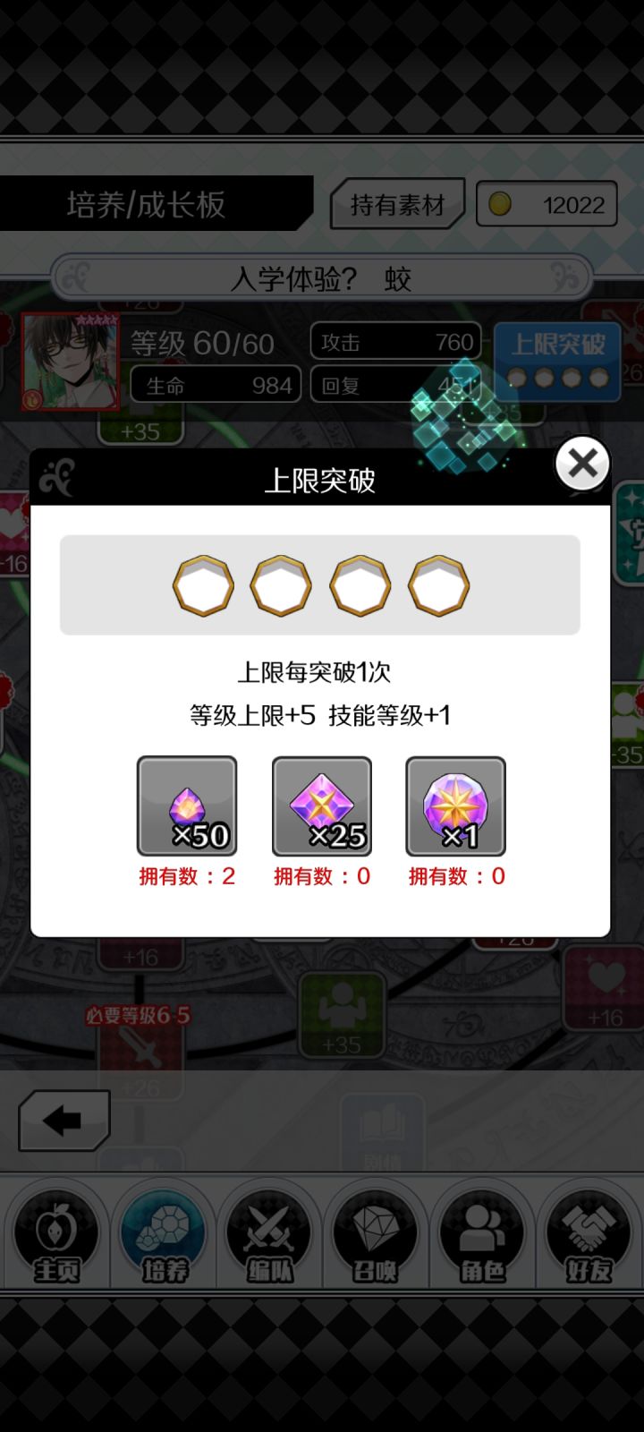 如果有需要,回复我,我贴个打的视频(图片是通关时候的阵容练度)队伍阵容:兑换的椿(靠打高级本换,主要是他的主动技能和风属性)/主动技能是碎珠的角色(随机碎珠多少颗,或者固定位置碎珠都行)/主动技能是奶的角色/主动技能是时间增加的角色/兑换的金(我的是拿满五张的,其实感觉觉醒就行)/助战:甜点威廉姆(根据队伍练度,图片这个练度应该需要50级以上的甜点)(碎珠,奶,时间增加,这三个角色最好是黄