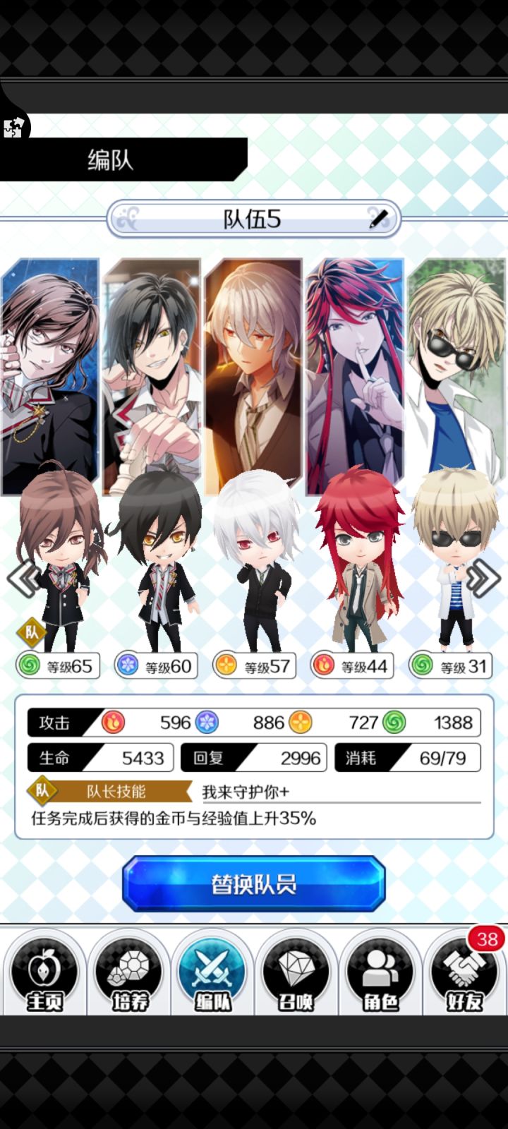 我就想说,战斗有没有二倍速,每次战斗都让我想睡觉然后领取东西,可以直接到账号上么,再打开那个领取的地方,有点多余的感觉然后,夸的来了,蛟真的太帅了,我好爱他一见钟情,cv也好棒,听蛟说话,每一个字都是心动的感觉