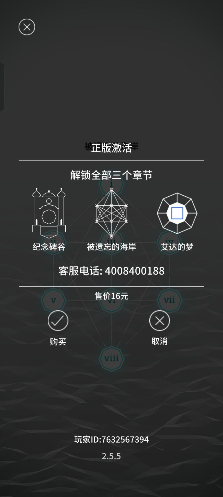 之前玩着不错,玩完第一章后购买了完整版,后面玩到一关卡主就没玩了,今天又拾起来了,第二章 被遗忘的海岸结束。但是玩不了第三章 艾达的梦,点不进去了,AR也用不了,提示我要购买完整版。想知道是怎么回事?我是2021年2月14日支付宝付款买的完整版,遇到过相同问题的小伙伴可以和评论相互交流,我想玩游戏