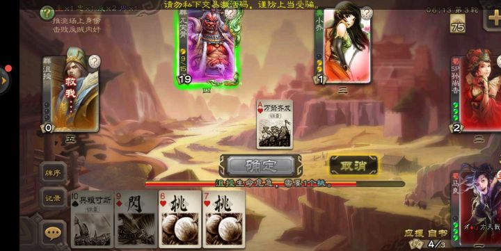 我主将二张,副将有一个凌统,凌统无论多少血都要把所有手牌弃光,然后发动旋风拆牌,这是个严重的bug,我都怀疑对面可能给我举报了。最后我自己托管认输了。