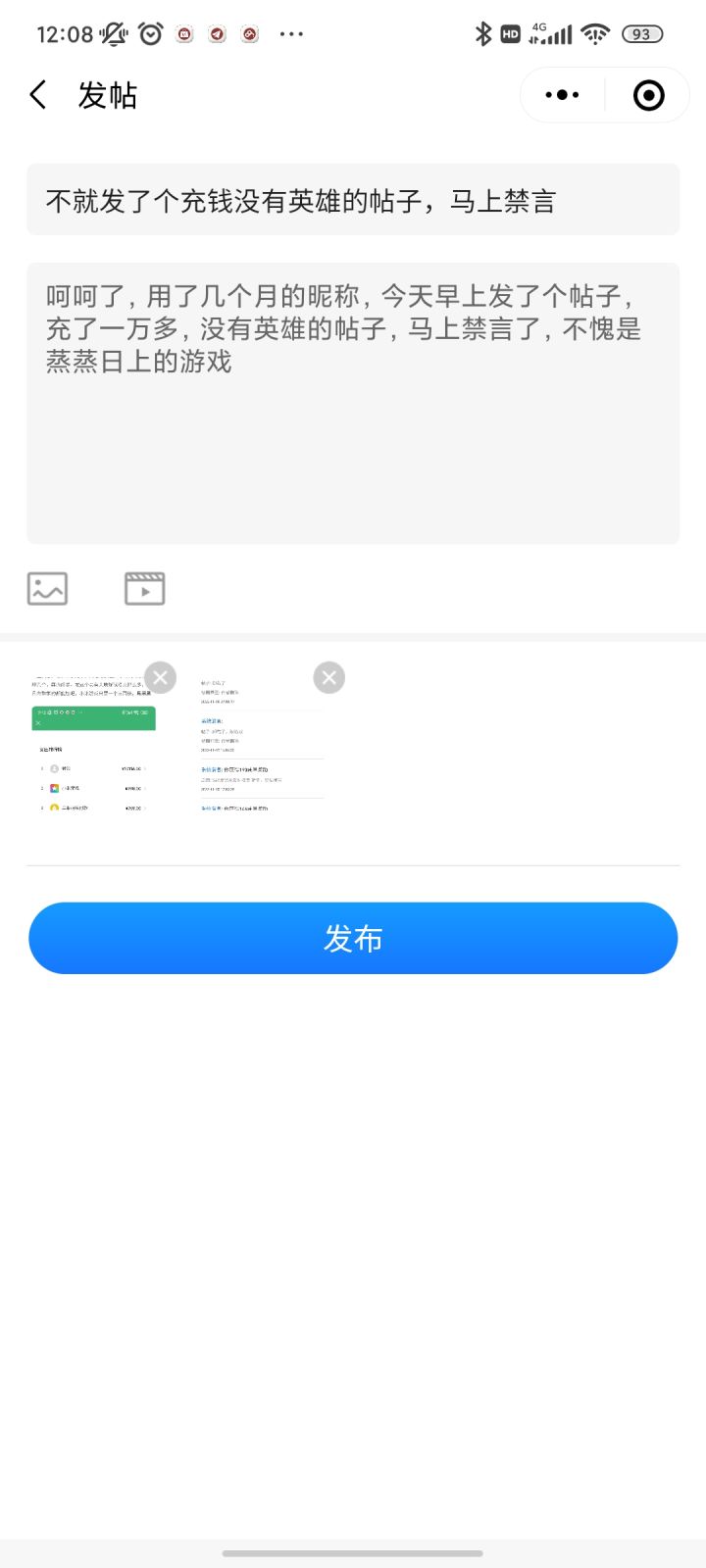 不就发了一个充钱没英雄的帖子,禁我言1000天,用了几个月了,没问题,今天发了个帖子就禁l