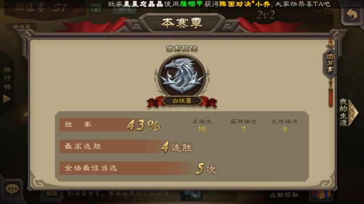 11号才把排位打到翡翠昨天回档到青铜零了
