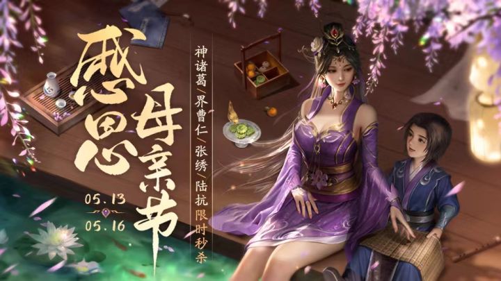 一、感恩母亲时间:5月13日-5月19日内容:(1)温情登录礼活动期间,4.1.5.0版本及以上的10级以上玩家每日可在特惠中心领取瑞兔呈祥*1+菜篮子*2(2)趣味福利活动期间,4.1.5.0版本及以上的10级以上玩家每日可在特惠中心领取趣味礼包*1(趣味礼包:打开有几率获得刘禅趣味动态表情试用*1,刘备趣味动态表情试用*1)(3)欢声笑语活动期间,任意模式累计完成两场,即可获