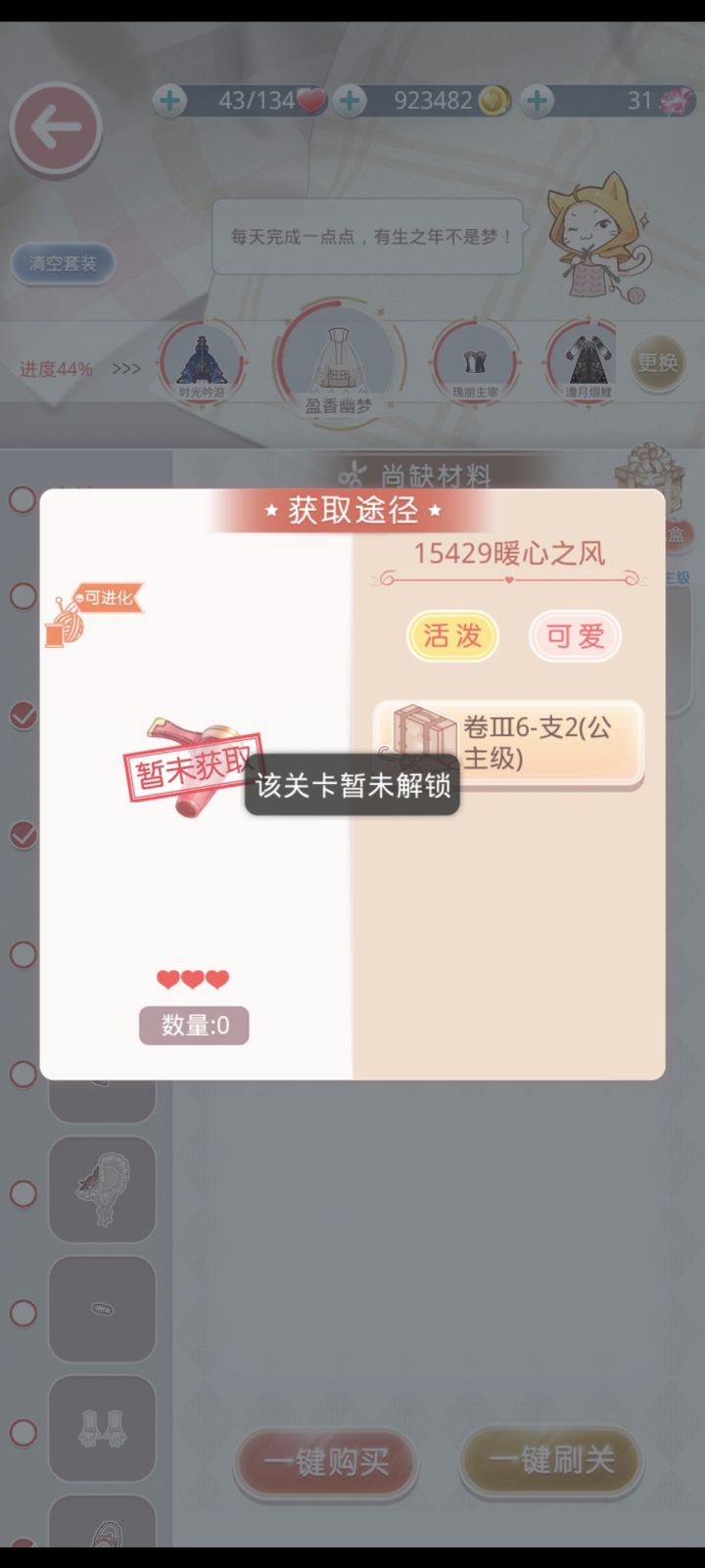 卷三6-8,这一关这个衣服怎么做啊,他需要的材料。是支线任务里面的,但是我找不到支线任务那一关,从大喵那里点过去,要做这一关,他又说前置未完成。#奇迹暖暖