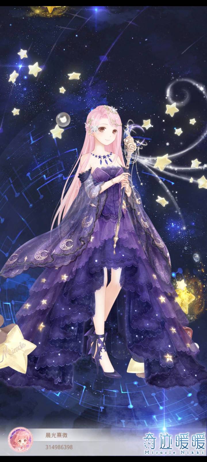 就是少了几颗星星。但是第一眼看上去就想到了星之海,这个紫色太经典啦,这套也肝了我好久不用花钻的有生套装,喜欢