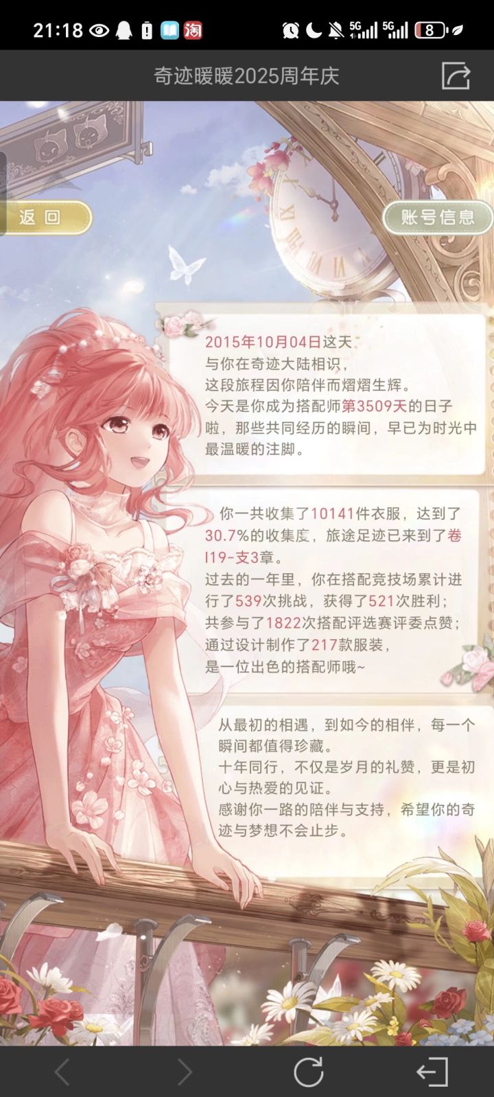 #奇暖十年奇迹之约 从初中开始玩,坚持了这么久回头看真的不敢相信,希望有一天暖暖更上一层楼,感谢游戏一直以来的陪伴