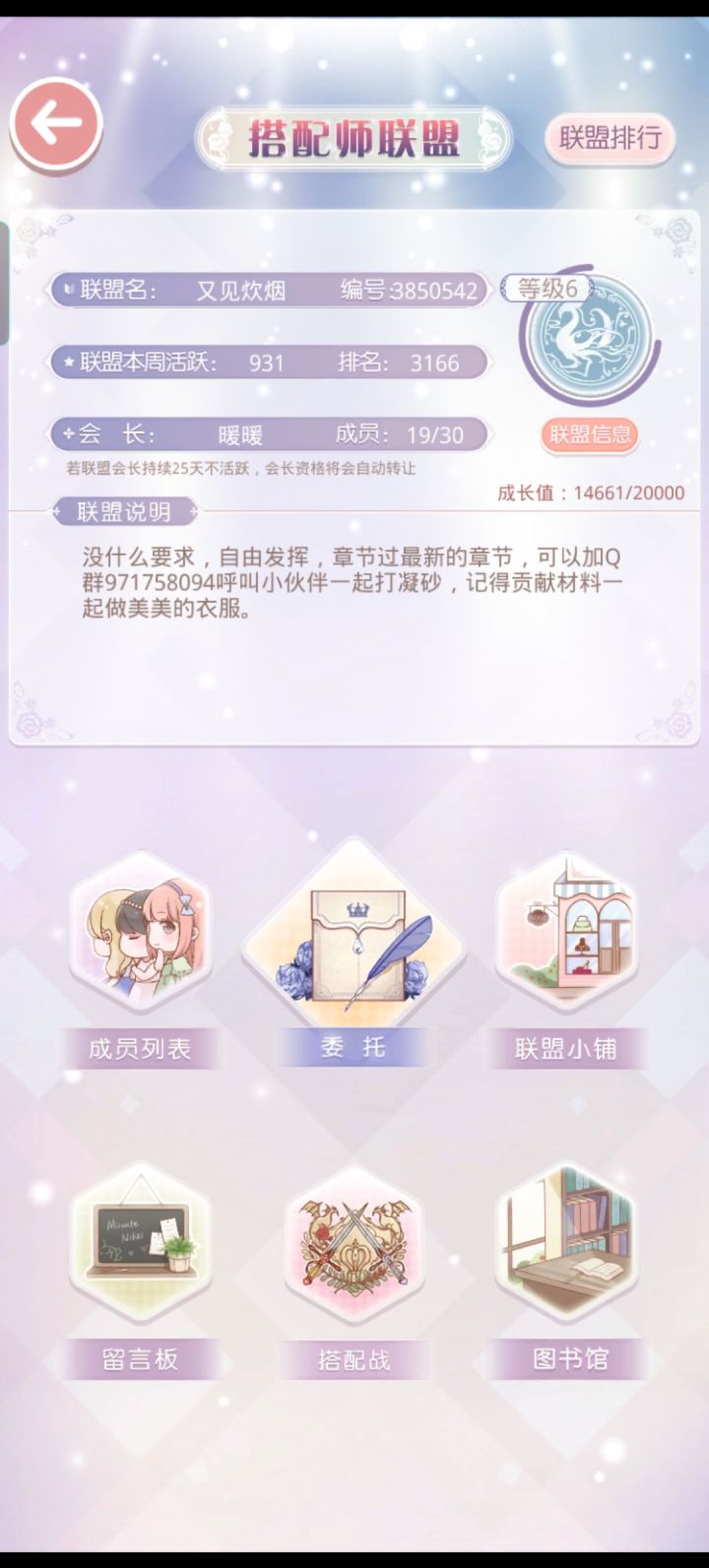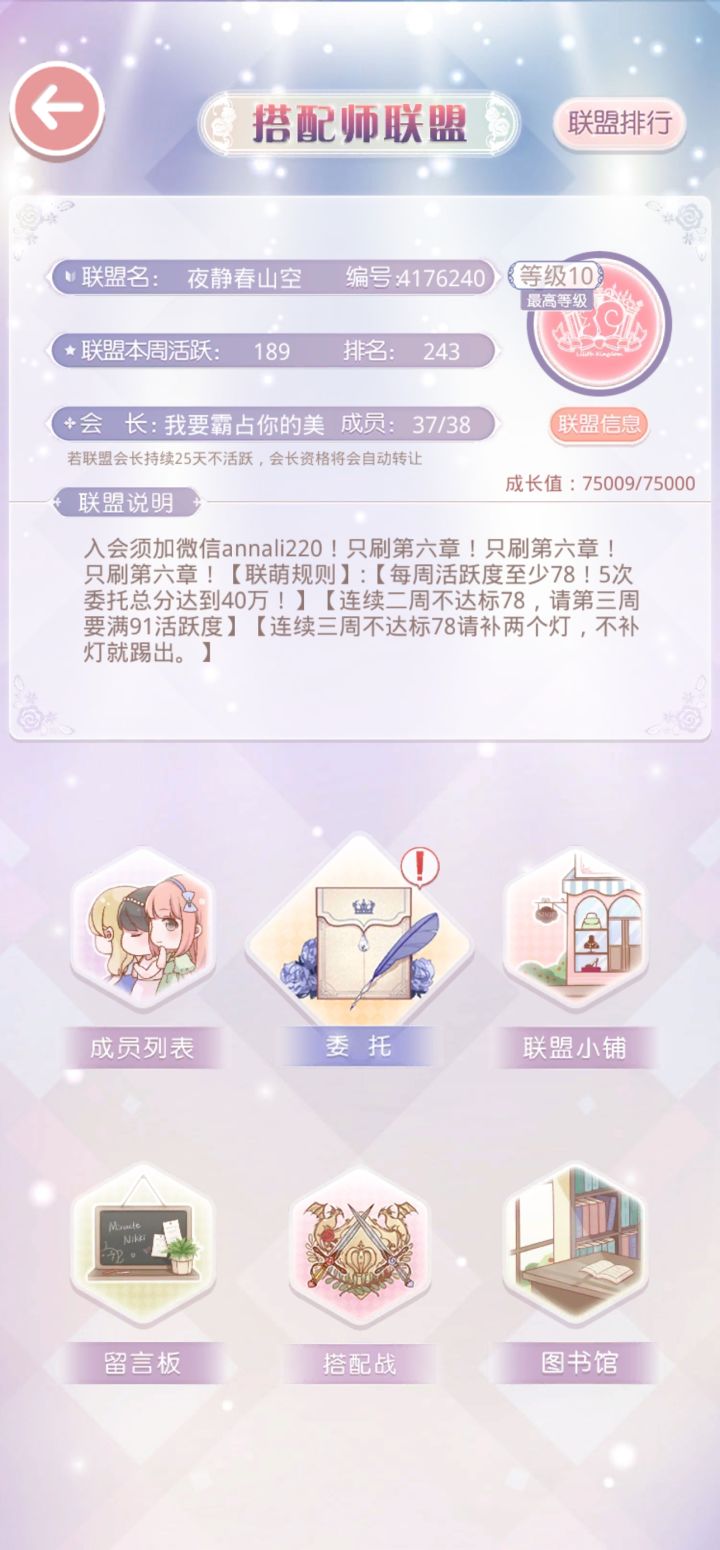 联盟里面活人好少,想来招一些宝宝只要长期在线,每周能做凝砂就好,周活日活没有要求,来新宝宝看看我们联盟吧#游戏日常 #奇迹暖暖