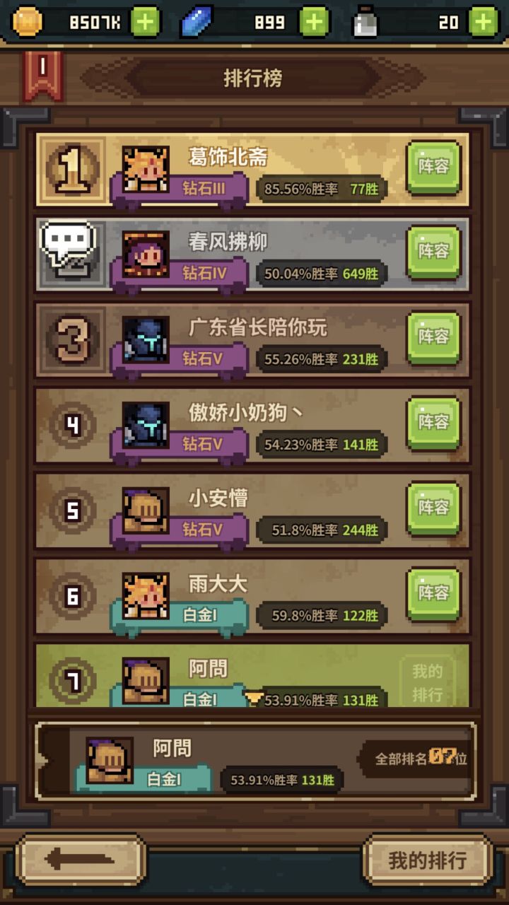 第一赛季本人排名这游戏不是随便抽三个s英雄就可以天下无敌的那种。氪金大佬高星s可以以一敌三,月卡党只用a.b英雄搭配得当足以应对大多数局面!S英雄5星以下发挥不出真正的实力,平民玩家只考虑a.b英雄就可以了。·主线通关阵容:在不考虑s英雄的情况下通关阵容我推荐萨德+桑尼+泰勒 遗物搭配眼泪+花冠+封魔阵 这个阵容刷图全靠普攻不需要放任何技能只要开局加上三个buff就可以了,萨德需要三星没有的