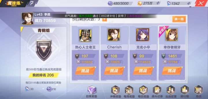 就充了6块钱,现在还有几百钻,所有人物都齐了,好像突然没有目标了,好空虚。接下来就只能肝碎片和武器了吗?那不是很无聊吗?