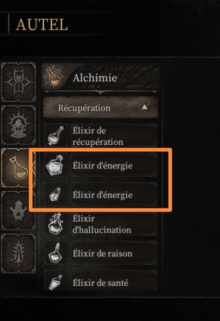 法语文本。图一是药水名字重了,贝妮塔祝福那里也是,甚至出现三个药水名字一样的情况。我们至今仍然不知道昂扬浓汁的法语名是什么。合理怀疑法语翻译的参照文本是英语而不是汉语,因为英语这里的翻译一个是stamina一个是energy,法语直接都翻成énergie,也没校对。图二三是同一文献显示的名字不一样。别的章节也有,但没截图。还有一些地方,比如整句话的漏译(可能是复制粘贴的时候没有对齐颗粒度?