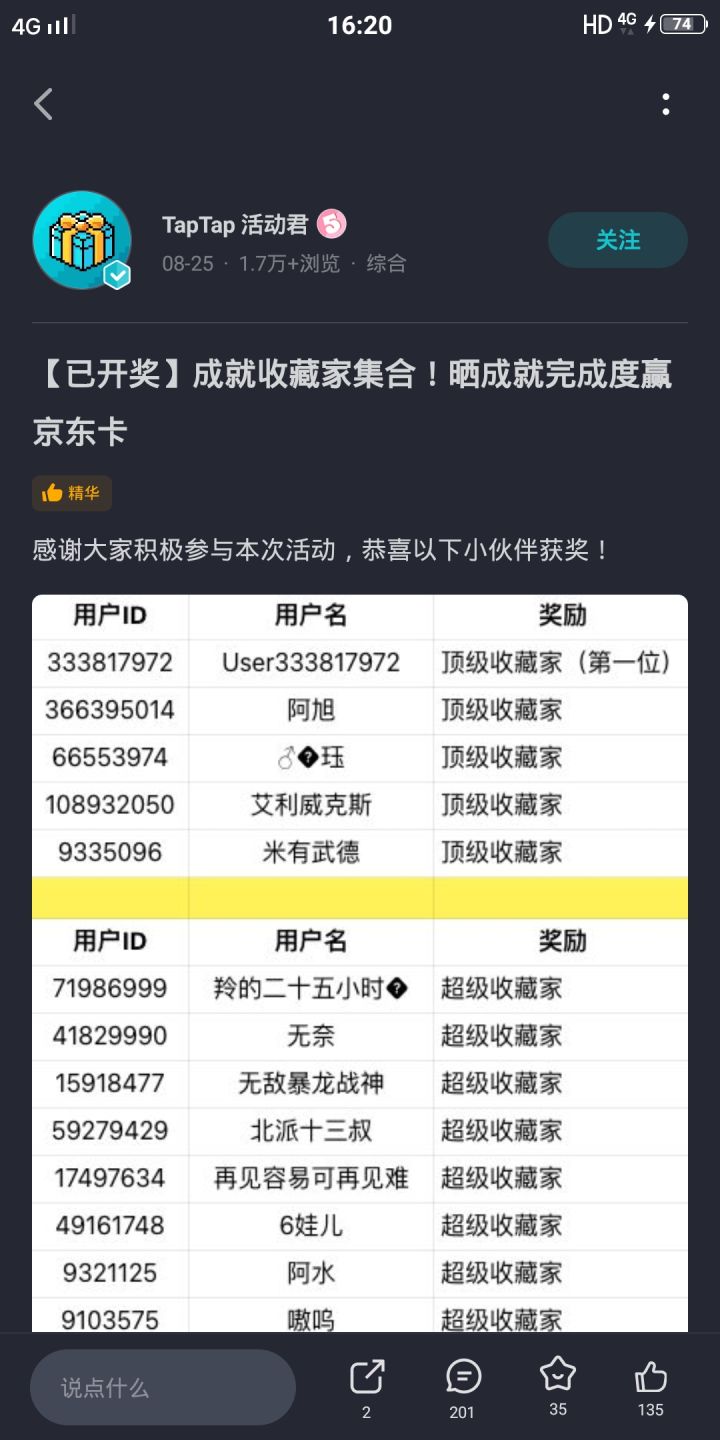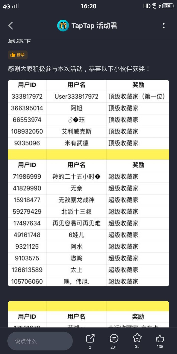 挑战赛结束啦,大家可以休息休息了,参赛选手们都很强,另外审核组的成员们辛苦啦,快去找夜哥结工钱。恭喜以下获奖的先驱者!速通A赛道TOP10:🥇 02:15🥈 02:17🥉 02:17④ 02:20⑤ 02:21⑥ 02:26⑦ 02:28⑧ 02:34⑨ 02:35⑩ 02:35评分B赛道TOP10:🥇 28588🥈 28496🥉 28458④ 283#发现好游戏