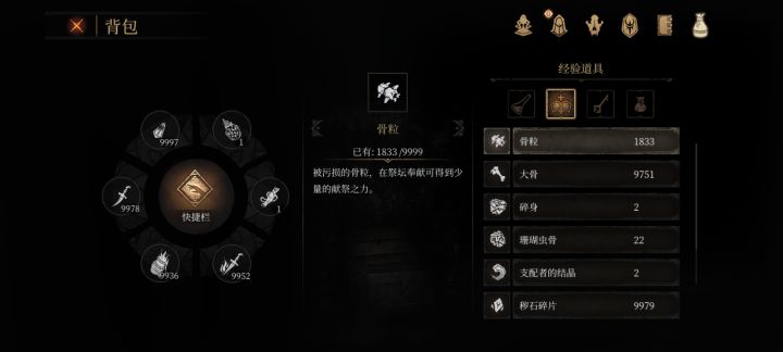 (喜欢完全自己探索或高玩朋友就不要看了)Q:晕3D怎么办?A:画质调最低,帧数最高,玩时屋里要有光,玩半小时休息Q:不认路怎么办?A:游戏改为轻松模式,仔细观察地面有蓝绿色光芒,跟随方向即可找继续推进主线任务(轻松模式下部分成就无法完成)Q:怪太强打不过怎么办?A:吃负重者之卵,在刚进游戏第一章的地图矿坑Q:前期骨粒,大骨怎么用,要升祭坛吗?A:祭坛可以后期刷,前期骨粒大骨留着在地